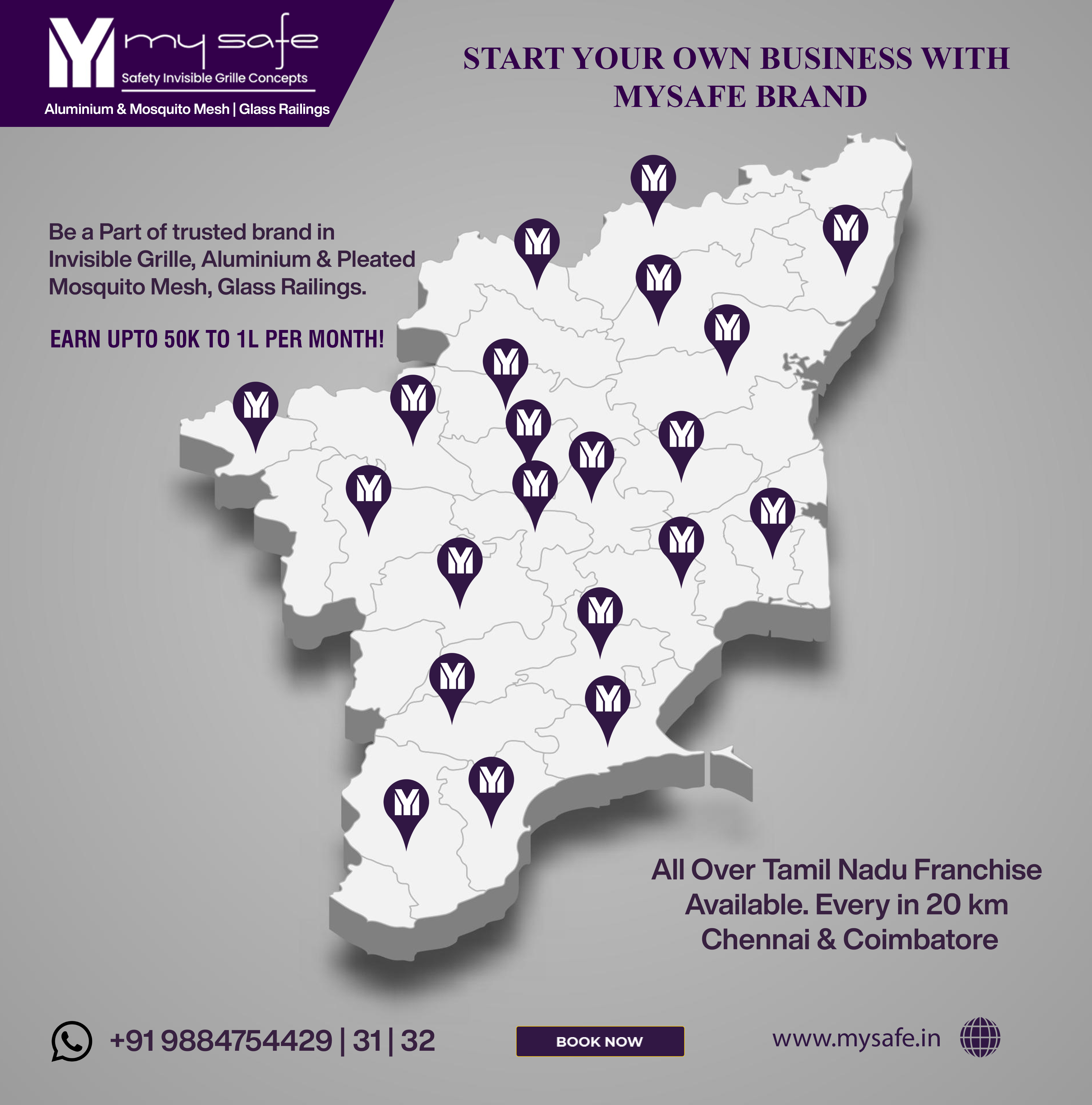 MYSAFE Invisible Grille have 25 Years experience in Exteriors and Interiors. Which started in Tamilnadu are Proud to Present in market we introduce our Last 7 years sucessful some of our products INTERNATIONAL STANDARD PREMIUM QUALITY.
